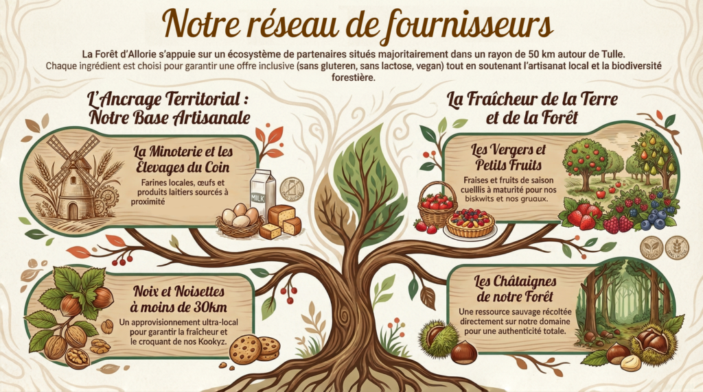 En sourçant nos ingrédients auprès des producteurs de notre région, nous participons à l’économie corrézienne, nous raccourcissons les chaînes logistiques, nous savons d’où vient ce que nous proposons à nos clients.